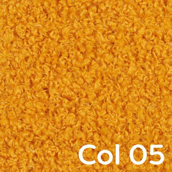 Steviedoodle is a 100% polyester yarn. It has the signature bouclé look, but without the classic loops, since the fibers are cut during production. This gives the yarn a full, fluffy surface with lots of character. The yarn is light and has a soft texture, making it irresistible to work with.